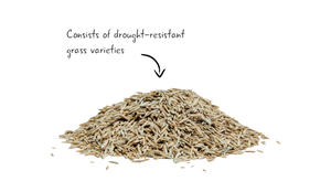 For our sun-resistant grass seed mixture, we rely on high-quality, RSM (German standard) certified varieties. Plantura Drought-Resistant Lawn Seed contains, for example, Festuca arundinacea which is particularly drought-tolerant and Lolium perenne 'Corsica'/'New Orleans' for fast germination. On top of that, the mixture includes Poa pratensis which supports a dense and durable lawn. You can find the exact balance of seed varieties on the bottom of the packaging.